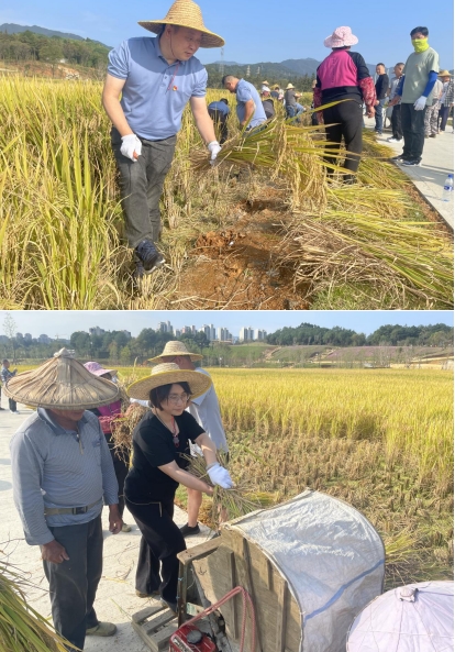 秋意漸寒,稻谷飄香。為深入貫徹習(xí)近平總書記關(guān)于實(shí)施鄉(xiāng)村振興戰(zhàn)略和糧食安全的重要論述,以學(xué)促干,推動(dòng)學(xué)習(xí)貫徹習(xí)近平新時(shí)代中國(guó)特色社會(huì)主義思想主題教育見(jiàn)行見(jiàn)效,2023年117上午,市政集團(tuán)黨支部組織全體黨員干部龍州濕地項(xiàng)目開(kāi)展“傳承蘇區(qū)好作風(fēng) 四下基層促發(fā)展”主題黨日活動(dòng),全面助力稻谷收割工作。