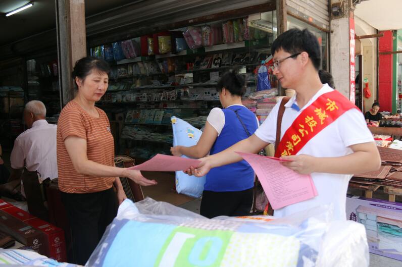 志愿者向居民和商業(yè)店鋪發(fā)放宣傳資料《創(chuàng)建全國(guó)文明城市倡議書》《創(chuàng)建全國(guó)文明城市應(yīng)知應(yīng)會(huì)知識(shí)》《創(chuàng)建全國(guó)文明城市知識(shí)問卷》,向居民和商業(yè)店鋪講解了“創(chuàng)城”的意義,并與執(zhí)法大隊(duì)人員一起對(duì)沿街不規(guī)范的店鋪進(jìn)行整改。